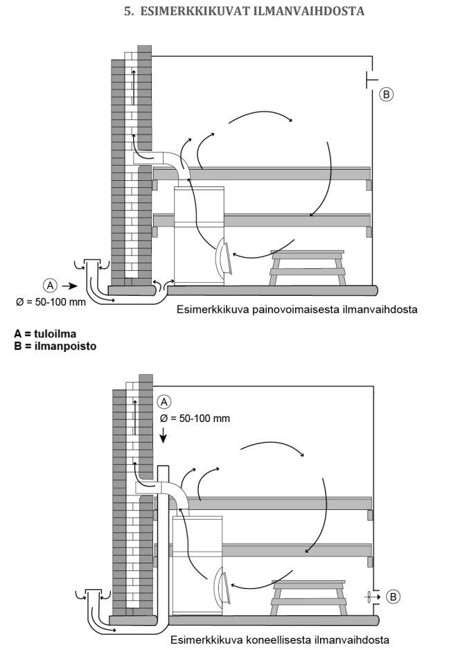 Saunan koko: 15-30 m³ / 10-20 m³ / 15-25 m³
