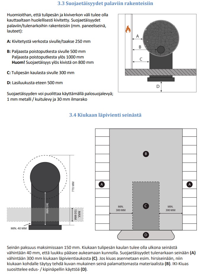 KIVI-IKI SL takkakiuas suojaetäisyydet
