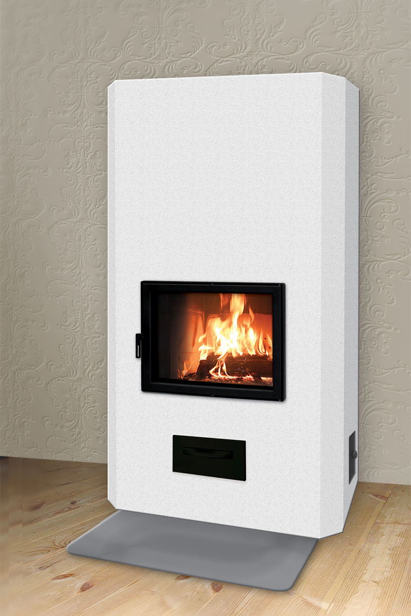 Warma-Uunit Valkea Basic 85 varaava takka kulmaluukulla | Warma-Uunit Valkea Basic 85 heat-storing fireplace with corner door